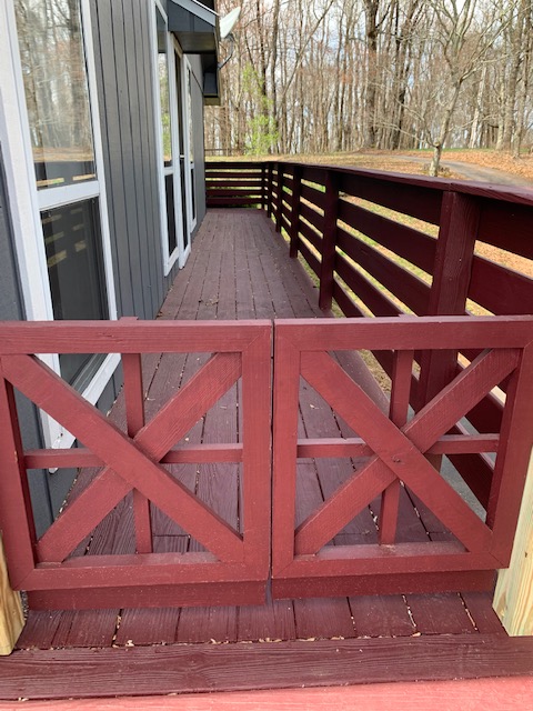 Last but not least, we moved the gate that was by the front steps over to the back side of the house since we are going to expand the steps and front area. Chloe, our adorable miniature dachshund has gotten quite bold and gone exploring a little too much for my liking. Rather than build a new gate, we simply took off the existing one and repurposed it to the side of the house. The only cost here was a 2×4 and 4×4 post. When the house is repainted it will look better but for now, we don’t really care as long as Chloe can’t go adventuring quite so much.