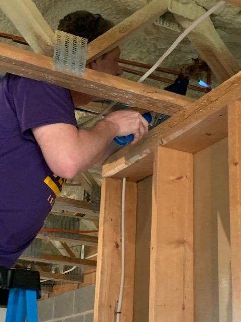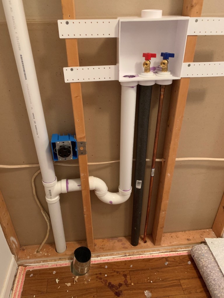 Now, on to what else was accomplished this weekend. Keith moved the laundry from a laundry closet which will be demoed soon to our master closet. The master closet is 5’x8′ approximately and big enough to house a washer/dryer combo. We went back and forth on this subject for a while when we decided to demo the middle of the house where the laundry did reside. Finally after a conversation with my friend Debbie where she told me they had put a combo unit in their closet, I convinced Keith it was a good idea. And it was! This won’t shock you to hear that my thrifty nature kicked in again and I found us a fairly new used washer/dryer combo on Facebook Marketplace for $400. (a fun small world story here – when I went to message the person selling it I realized we had two friends in common on Facebook – turns out she’s friends with my sweet cousin Ellen and we were all at Ellen’s wedding in Charleston in July!)