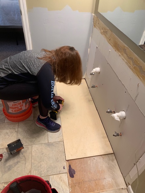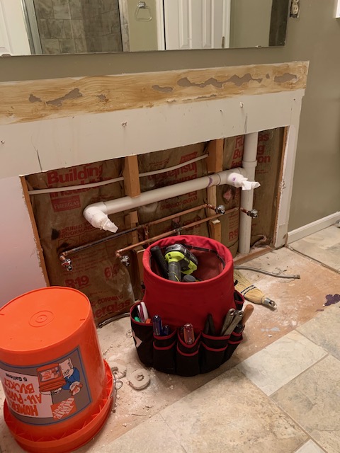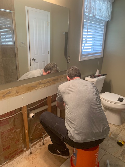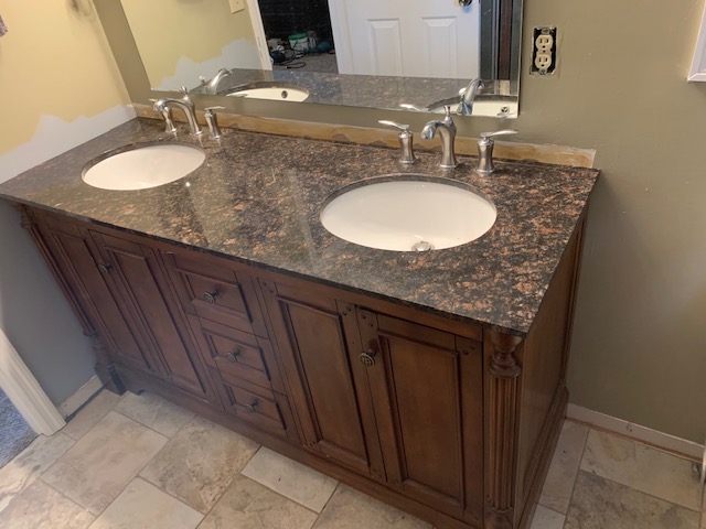 Enough about all that…let’s get on with what we’ve done over the past few days. I mentioned in my first blog post that our master bathroom was one of the rooms we were going to tackle. It’s far from done, but we have made good progress in that Keith wrapped up our new (to us) vanity which I found on Facebook Marketplace for $150 all in. I think it looks terrific. I’ve ordered mirrors which I hope show up (not quite sure about getting packages up here), a new shower door, towel rods, lighting, etc. Hopefully we’ll have a completely finished project to show you in the next two weeks or so.
