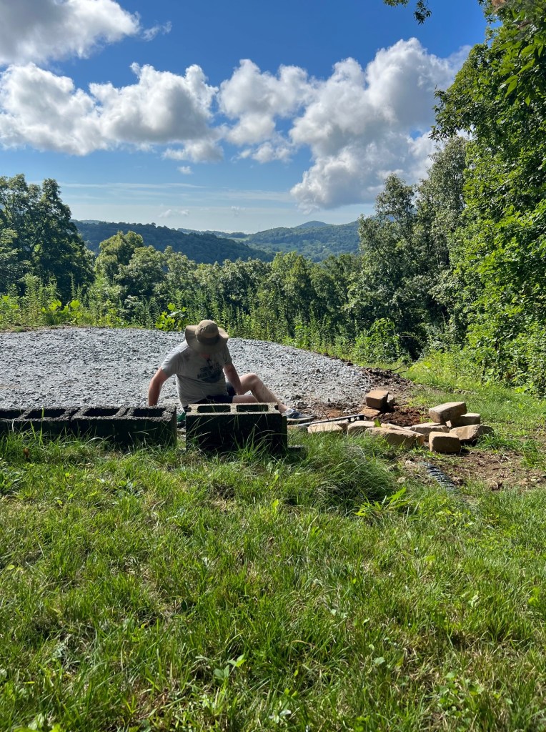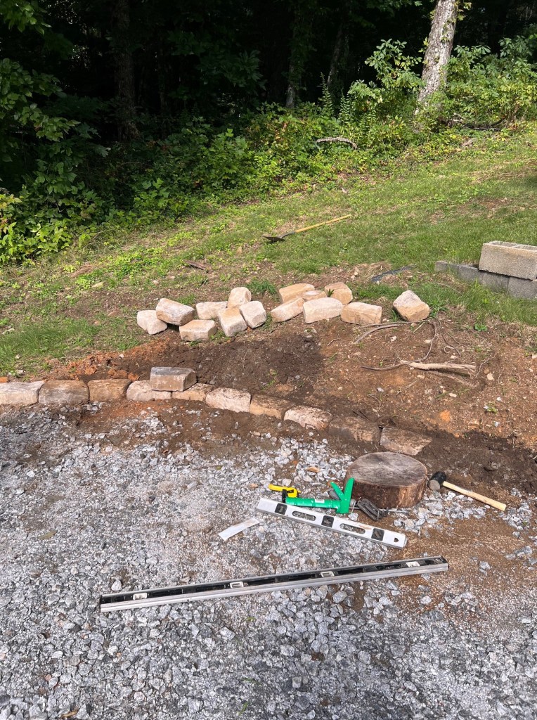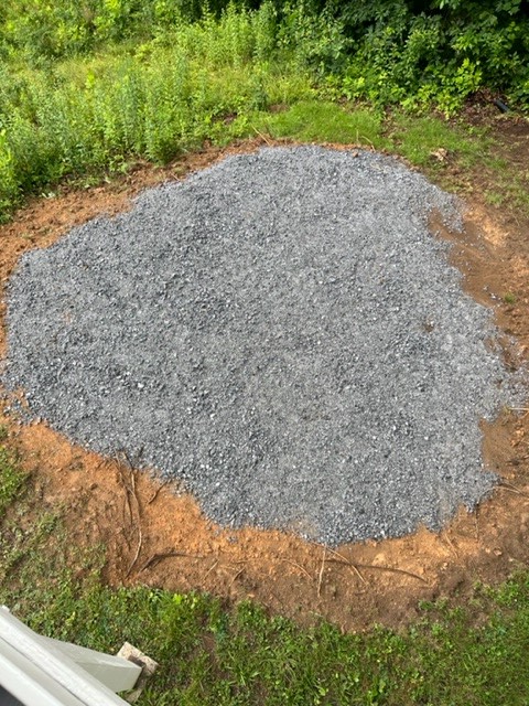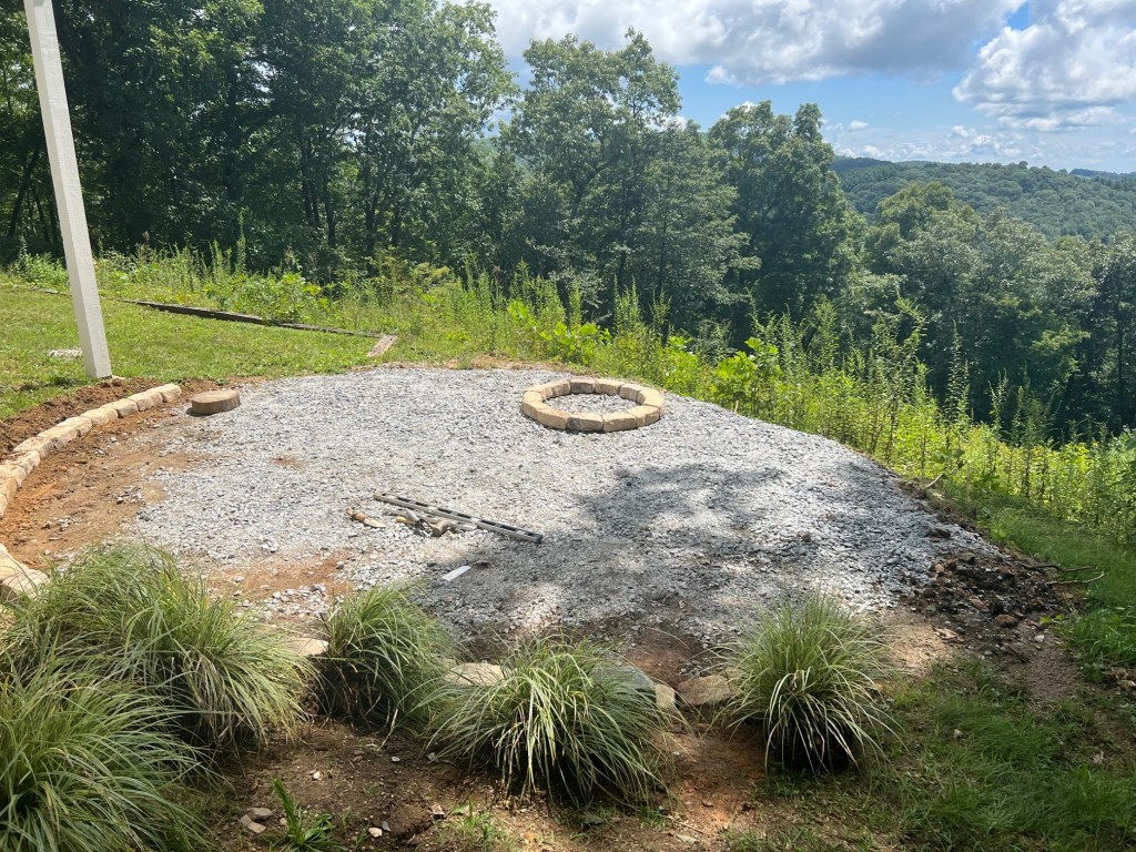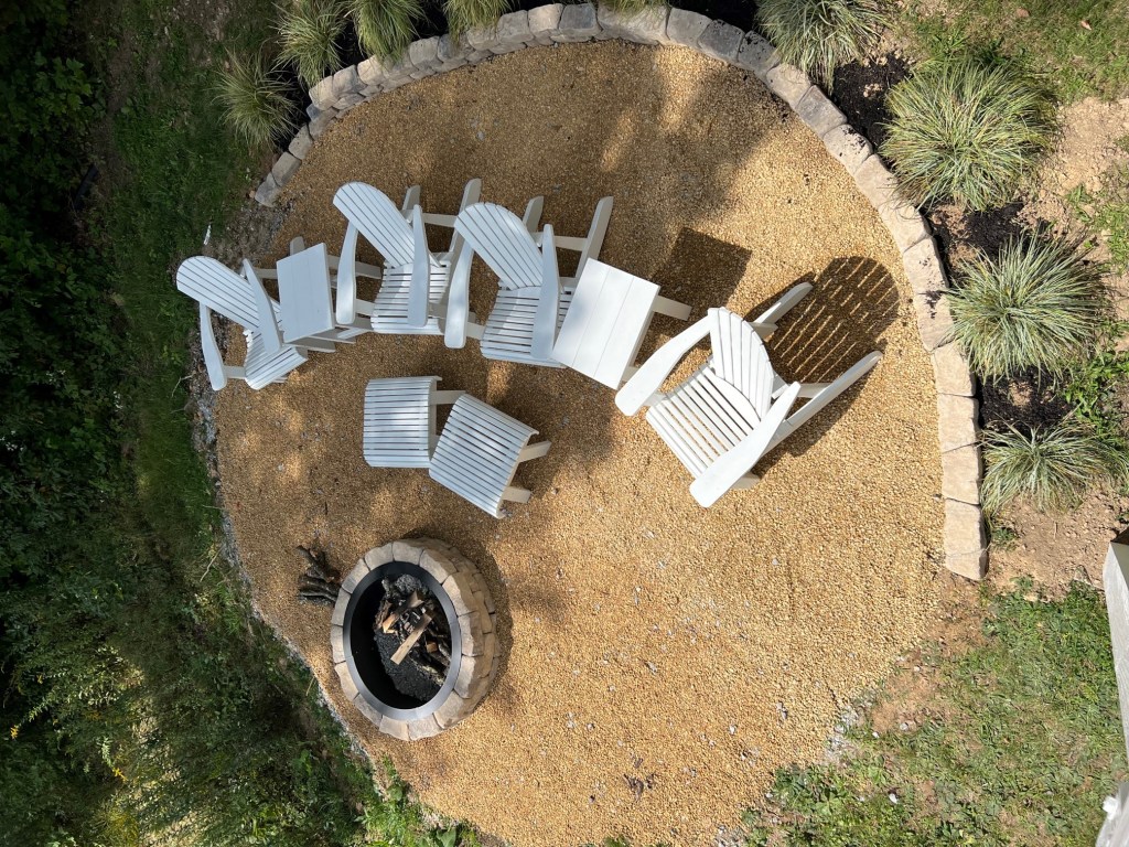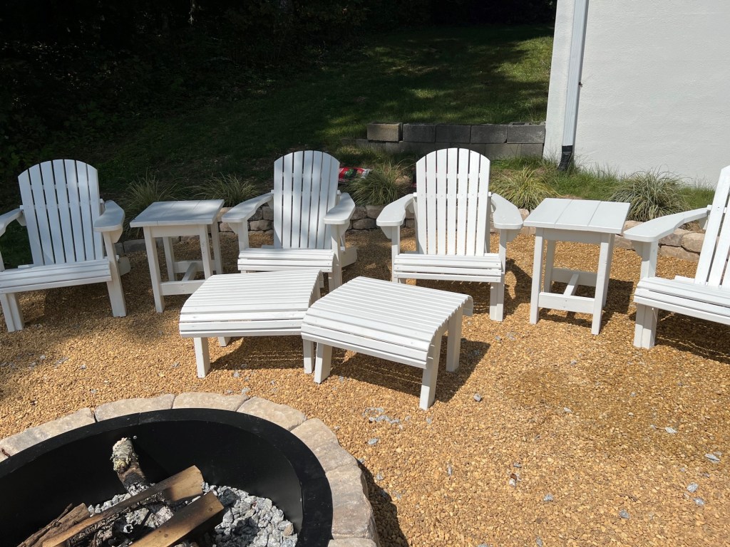 When we started on the Adirondacks, we knew we’d be moving our fire pit to the “back yard” of our house so we could enjoy a fire and a view. We had been waiting on when we could get a new gravel driveway in for them to also gravel out an area for the fire pit. Well that finally got completed in August and we were ready to go. Or so we thought! What I realized the weekend after they put in the fire pit gravel was that we needed to build a small retaining wall for the back of it to keep mud and dirt from washing into it. Scope creep! Oh well! It wasn’t that hard and we’re super pleased with the results.