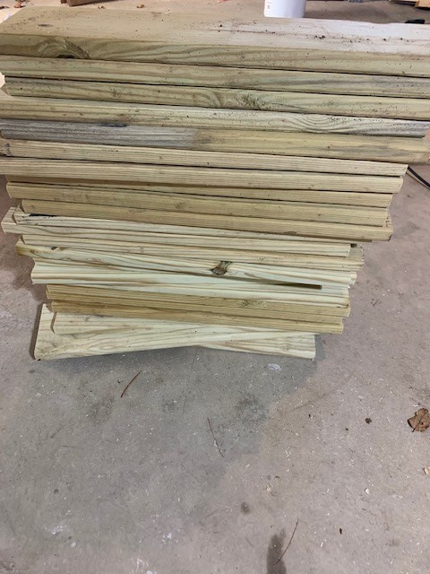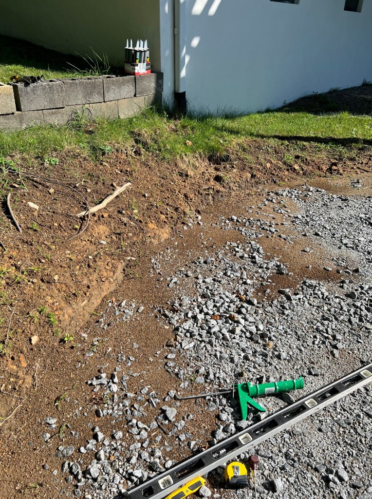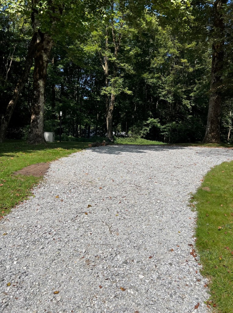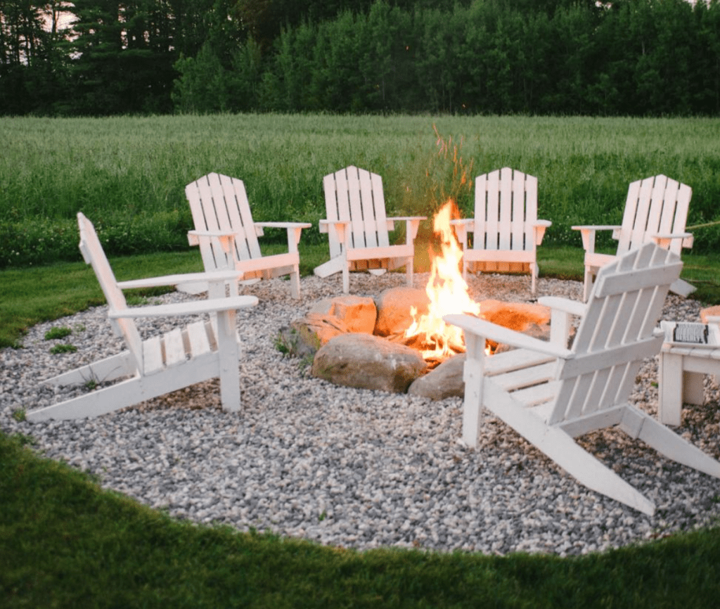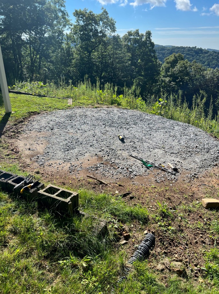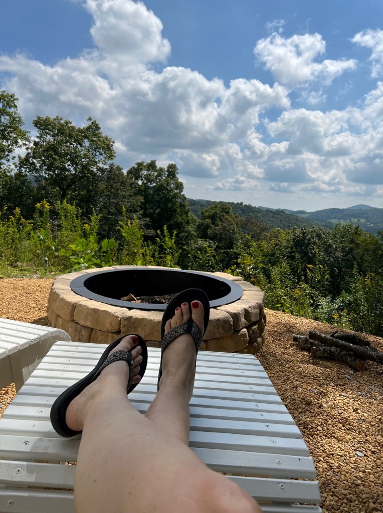 When we started on the Adirondacks, we knew we’d be moving our fire pit to the “back yard” of our house so we could enjoy a fire and a view. We had been waiting on when we could get a new gravel driveway in for them to also gravel out an area for the fire pit. Well that finally got completed in August and we were ready to go. Or so we thought! What I realized the weekend after they put in the fire pit gravel was that we needed to build a small retaining wall for the back of it to keep mud and dirt from washing into it. Scope creep! Oh well! It wasn’t that hard and we’re super pleased with the results.