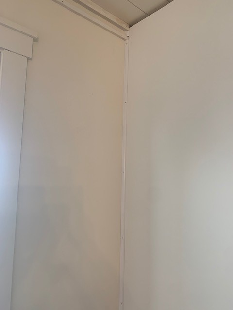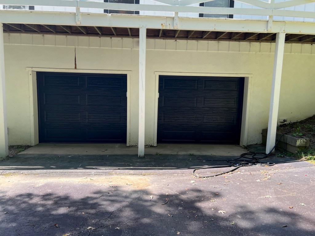 Last but not least, we finally got in our new garage doors after a long supply chain wait. Ignore the weird black line above the left door – we’ve got to clean whatever that is off! I’m so happy. These are safe and secure as opposed to our old nasty ones!