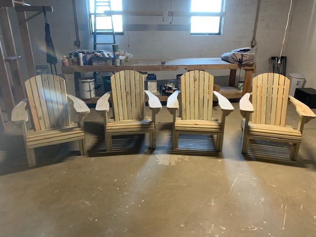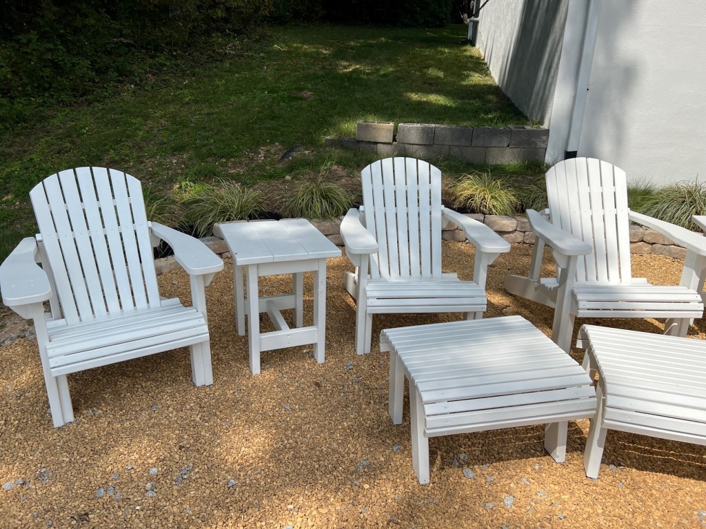 You may remember about 10 months ago, I revealed our Adirondack chair project. They turned out great and we were so pleased. We ended up building a couple of ottomans and end tables in addition to the four chairs. Painting them wasn’t very fun, but they look fantastic and you’ll get to see them in just a minute.