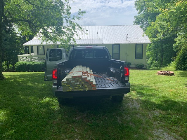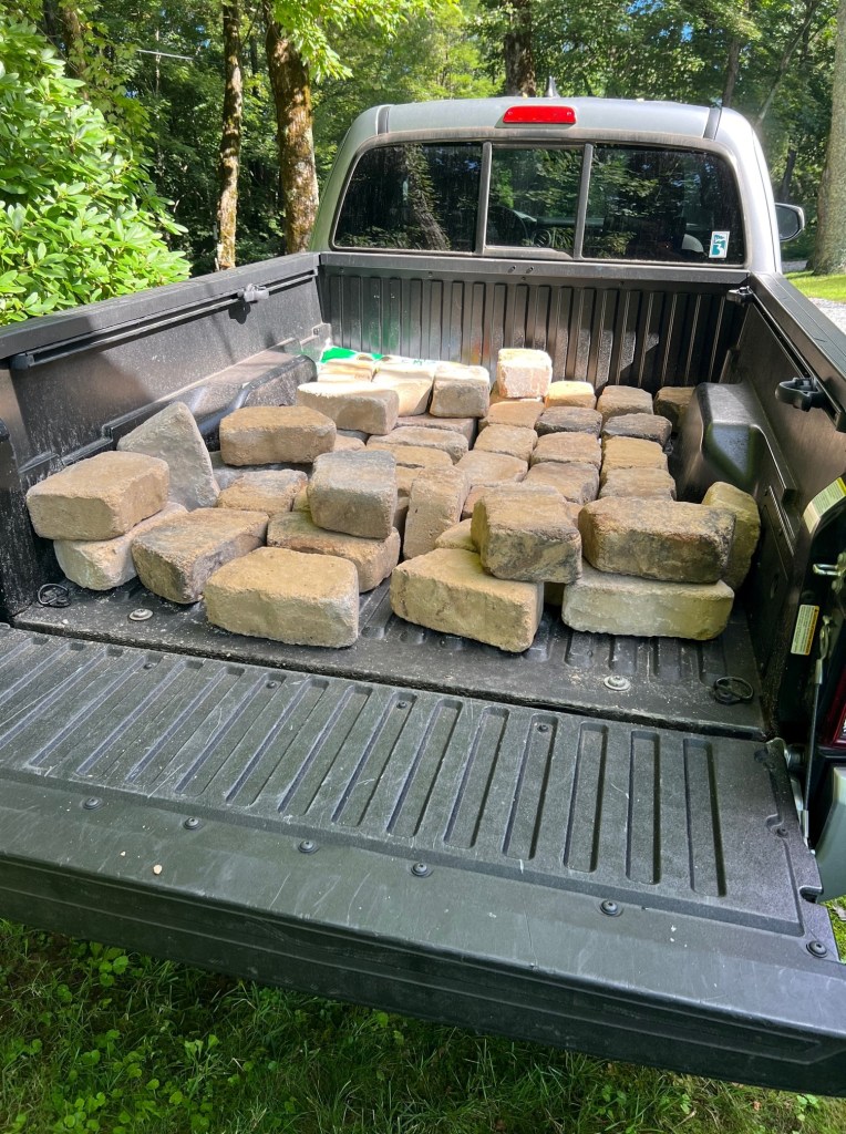 Needless to say, not only did we have to bring in stones for the pit, but we also needed pea gravel to cover the street-grade gravel and fill in where the mud was. That’s where our pickup came in handy!