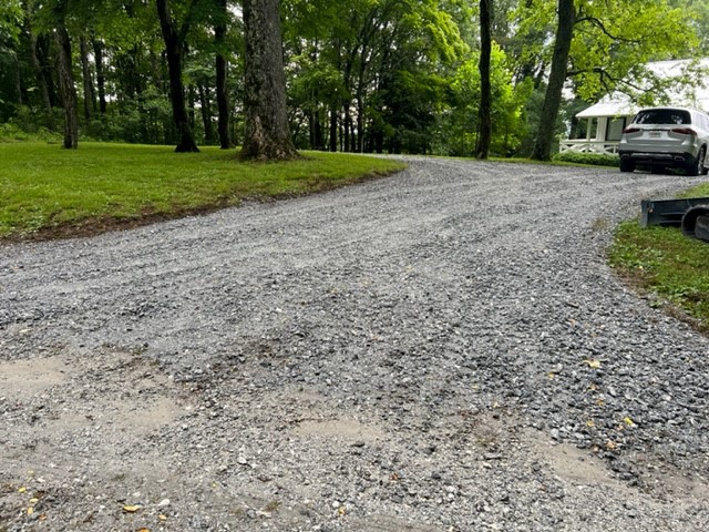 I mentioned that we also got a new gravel driveway put in. I’m so happy with it too! I’ve wanted to do it for a while but it took a long time to get on the schedule to get it done. Our real asphalt driveway is great if you want to go to the garage but otherwise it’s far away from the house and a treacherous walk to get in the house from it. I envisioned a driveway we could pull directly up in front of the house with and also a turnaround. It turned out so great and I’m thrilled I don’t have to walk through wet grass to get to the front door anymore. It also reduced how much I had to mow! 😉 Here are some pics as they were starting on the project.