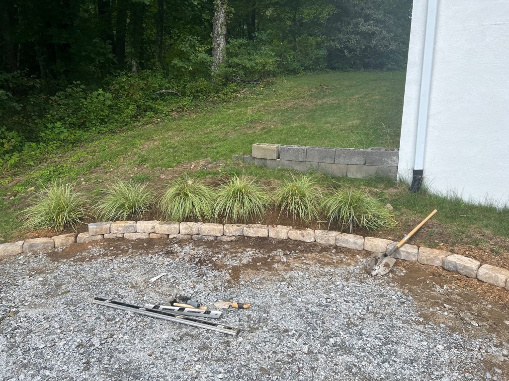 The ornamental grass is recycled from our house in Atlanta. We had to have a tree removed and those were near it so we went on and dug all of them out and transplanted them in the mountains. We’ll see if they survive the winter. I do also need to plant something in front of the other very unattractive cinder block wall. In due time! 😉