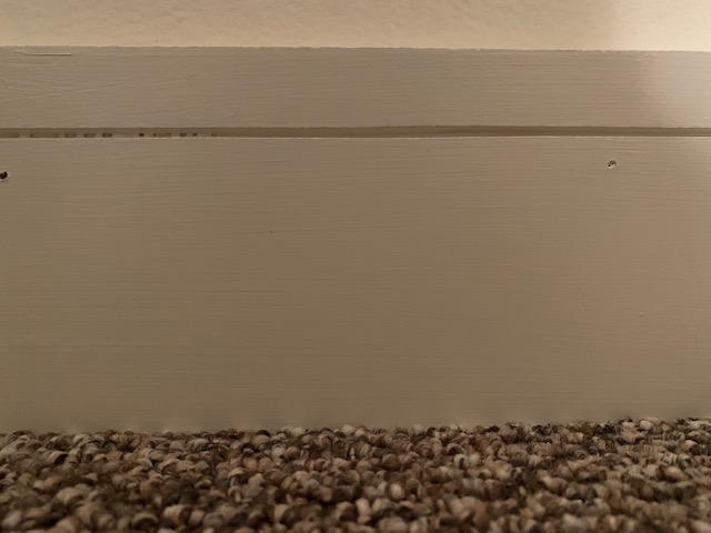 While I was painting the doors, Keith started putting up more trim on the bedroom walls. I joked that if you could put blinders on, you might actually think we’re done with the house, since those walls are wrapped up now. In between coats of paint on the doors, I came up and caulked all of that trim and eventually painted it all. Keith painted the ceilings in the hall and the guest bathroom, which we hadn’t gotten to last week.