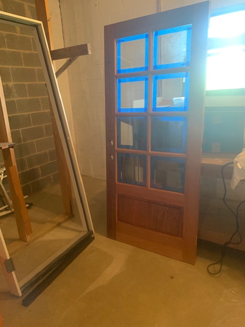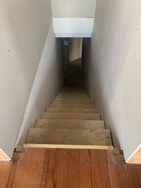 Doesn’t that door look good? Ha! Don’t forget that eventually we’ll be building a banquette to kind of “hide” that wall which is around the basement stairs.
