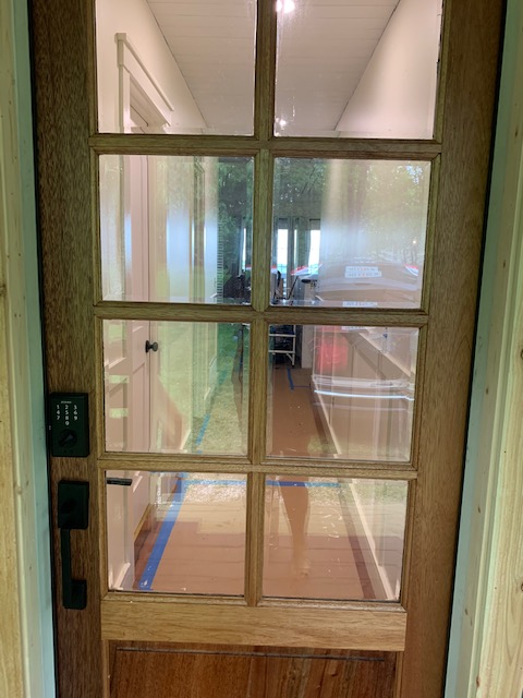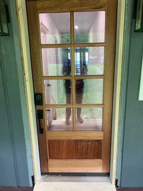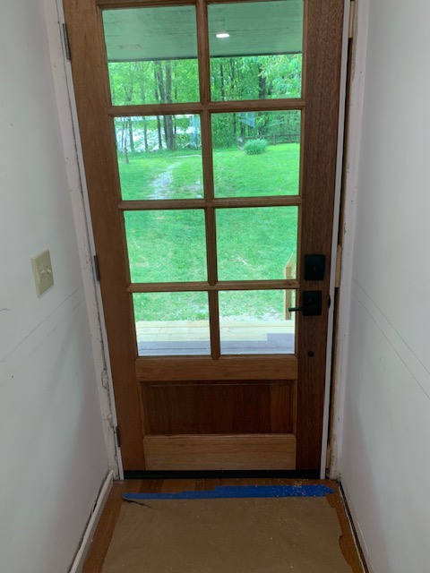 We went with a programmable lock, which will be a lot easier than using a lockbox. Here are a few more pictures for you to see the progression of the front door this week.