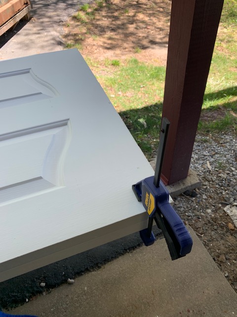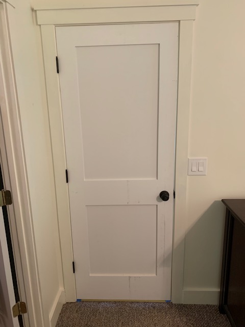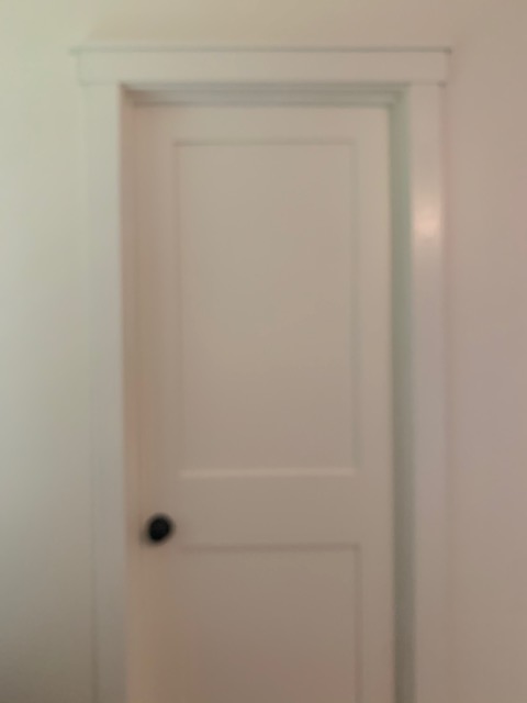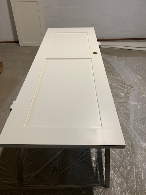 Once mom and I arrived back up after PT on Thursday, I got to work on the interior solid wood doors. I had figured out the best way to paint them last week but simply ran out of time. This weekend I was able to wrap up 4 doors and have now figured out how to paint them relatively quickly. Which is a good thing when you don’t have a door on the bathroom. Just sayin! The finished doors look amazing and I’m really proud of the work we did on them!
