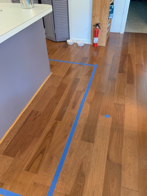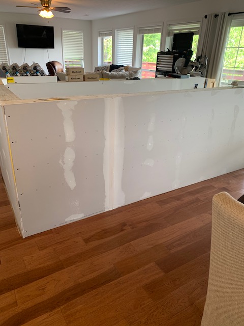 The good news is the design itself is mostly intact, but we had to make a few small revisions. Namely, we reduced the width of a few cabinets on both sides of the kitchen, as well as the island. Keith had the brilliant idea to start our kitchen remodel with the island. We can demo the current island and go on and install the new island without disturbing our current cooking situation. Since we plan to install our range (which has a downdraft) in our new island, we can get that up and running before demoing the rest of the kitchen. We can move the current refrigerator to the den during kitchen demo and that way we won’t ever be without a kitchen. So back to the revisions we made. After taping out where the cabinets would end, we realized they were just a little too much, so we are cutting our pantry cabinets (2 on each side) from 24″ to 18″ each. That will give us an extra foot of floor space but it takes away from our pantry space. Ordinarily that wouldn’t be a big deal but we had planned to put the microwave in one of the pantries. So, back to the drawing board! We saw that Ikea has an under-cabinet microwave cabinet, so we’ll be putting that to the right of the range and we’ve solved our problem.