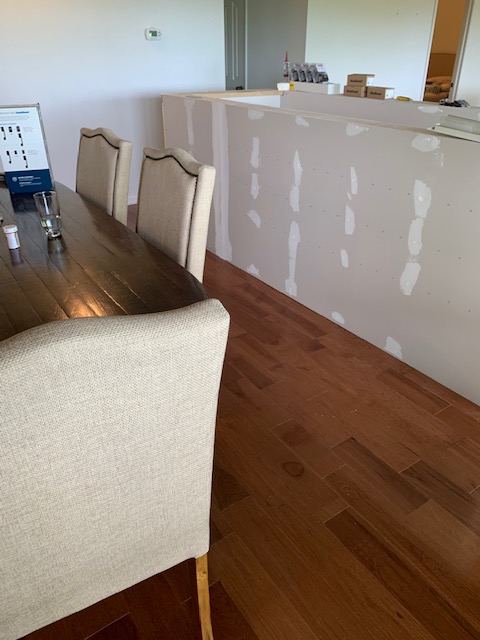 Now on to the progress that has been made since I last blogged. First, let’s take a peek at the flooring. Remember that we basically gutted the middle of the house, removing a brick fireplace, pantry and laundry closet. That left a LOT of missing flooring. But thanks to Kevin, our handyman extraordinaire, you can’t even tell that we took anything out! Just to remind you, this is what it looked like just a few weeks ago.