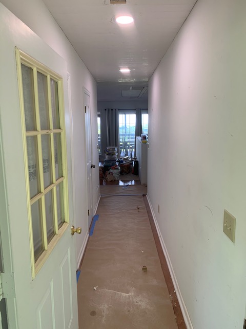 We do still have to switch out the electrical outlets and switches and put up the trim around the ceiling and paint, but we’re close with the hall now. And here’s a look at the (almost) finished product.