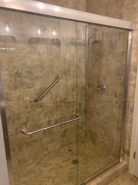 So let’s start with the master shower. It’s finally complete with functioning shower doors and we couldn’t be happier. It’s easier to get in and out of and looks a little fresher. Just as a reminder, I’ve included a before and after!