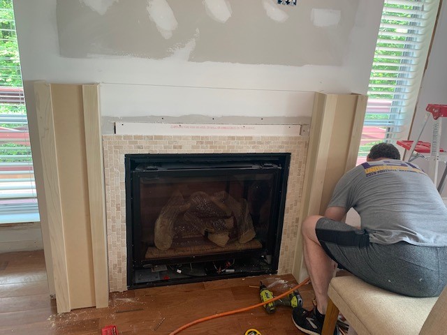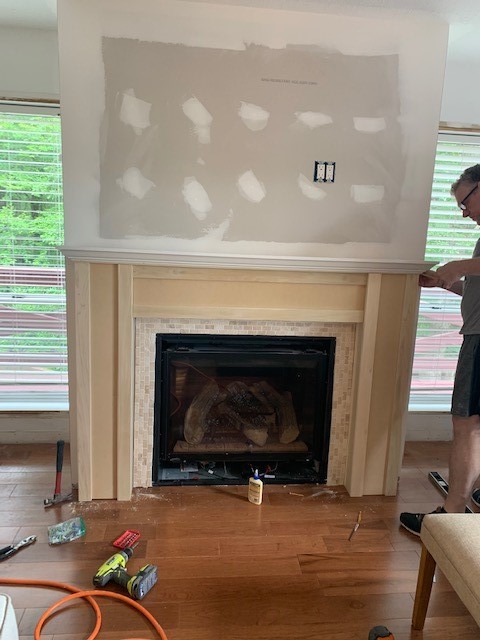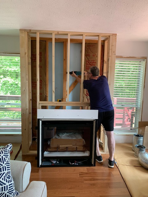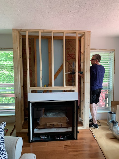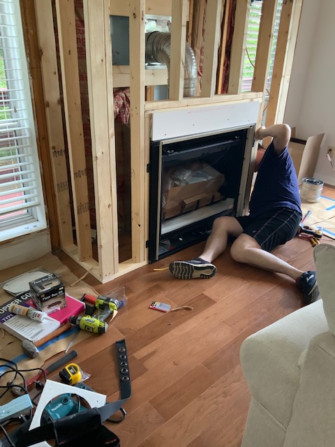 Let’s start with where we left off last week … the fireplace. It finally came in and Keith got to work on reading the manuals. All 120 pages of them. Yes, you read that right .. 120ish pages. And each and every one of them had a caution saying “Caution! Fire! Explosion!” A little intimidating to say the least. But nothing stops my man and he got to work figuring out his Home Depot shopping list and he made a plan. After a long trip to/from HD, he got to work. Folks, this is no easy task and I can honestly say I helped very little with it. I’ll take credit for what I did help with, don’t worry. But let’s take a look at the progression from receipt of the fireplace on Friday morning until we turned it on this morning! And don’t worry, there was no Fire! Or Explosion!!!