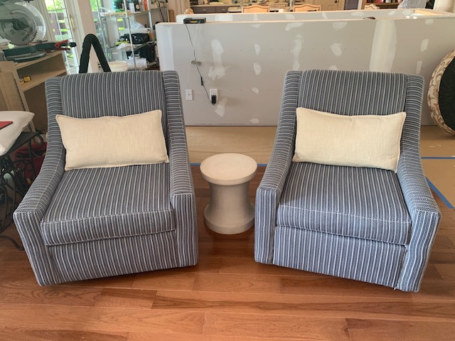 When we arrived back to the house this week, it felt like Christmas. Some more of our accent furniture had arrived. Yay! We assembled our new coffee table, lamps, etc. We are happy with everything and you can almost believe it’s not a construction site still!