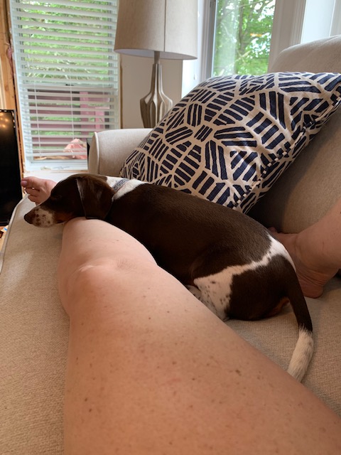 After all that, we were both pooped. And apparently Chloe was as well, as this is where she ended up when I laid down on the sofa….