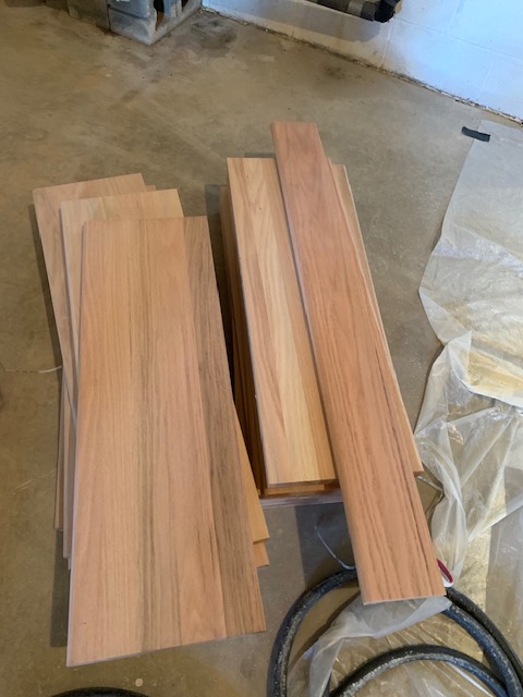 So while Keith was doing his marathon Home Depot shopping, I was working, I promise. I mowed the front yard, painted a couple of doors, sanded and primed a BUNCH of trim and sanded the oak treads we bought for the stairwell down to the basement.