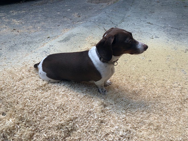 Last but not least, I thought I’d show this adorable picture of Chloe sitting in a pile of sawdust. She’s pretty tolerant of us working on the house, to say the least.