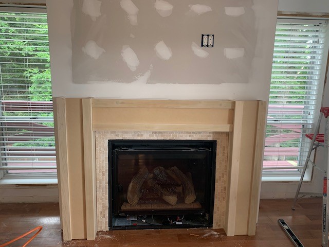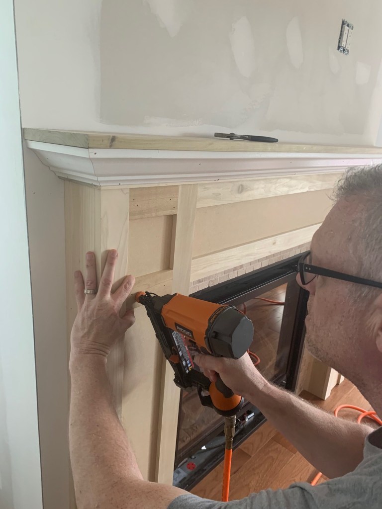 And here’s the (almost) final product! We still need to add the additional trim pieces at the top and the base, but otherwise the mantle is complete.
