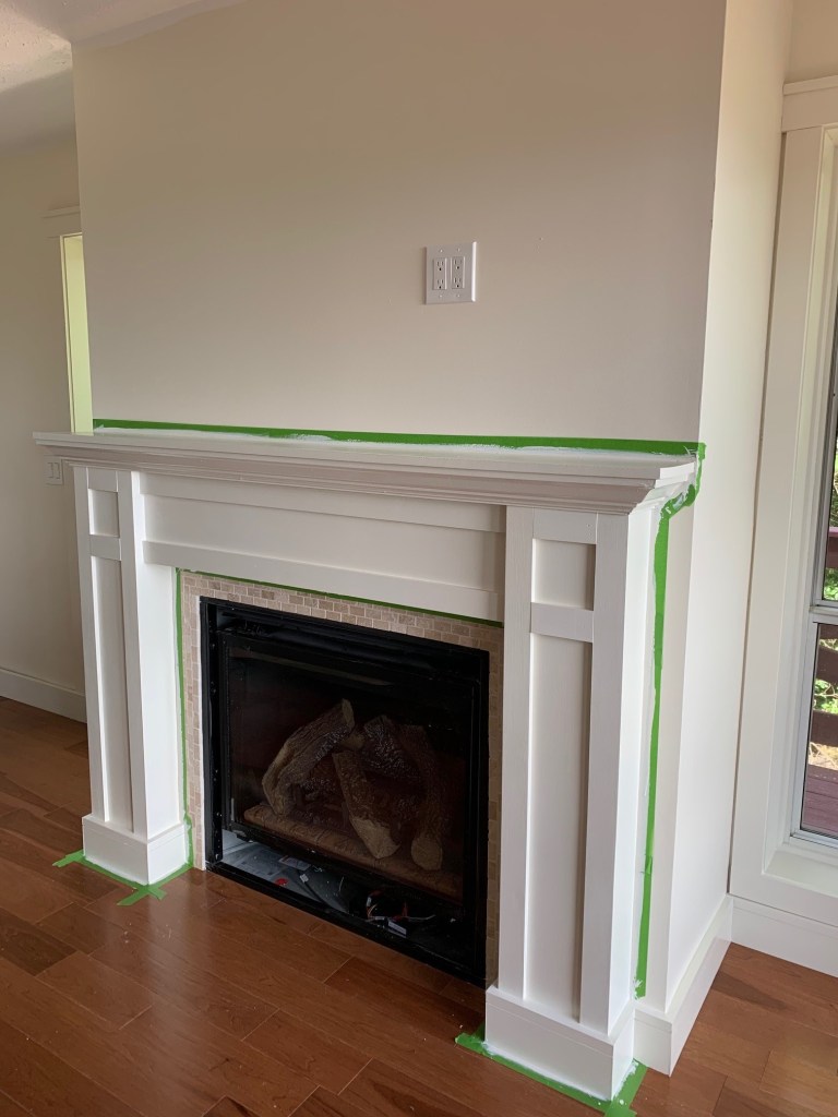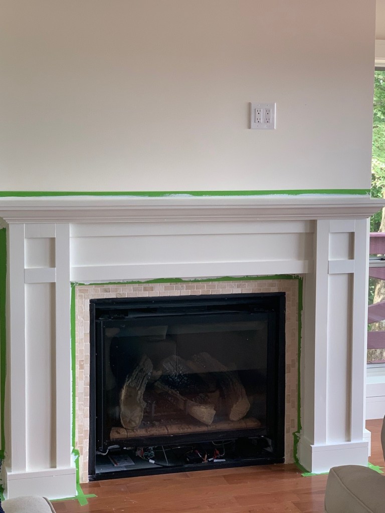 Fireplace….it just needs one more coat of paint on it and then it’s done. Because none of the wood or MDF we used had been primed, it’s taking three total coats. But it looks great. It’s still missing the decorative front cover and the blower. I can’t say I’d recommend the fireplace shop we bought it from. They definitely operate on “mountain time”. But here’s what it currently looks like.