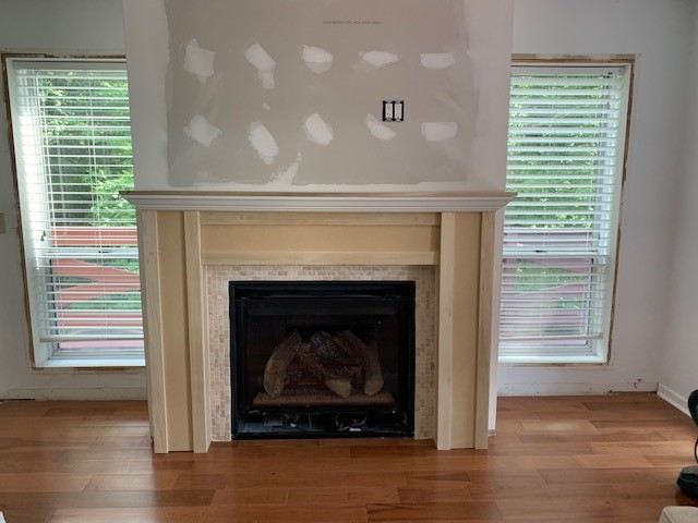 Now, let’s talk about our fireplace. We ordered a direct vent gas fireplace a couple of weeks ago, and it’s been delayed but should arrive this week. We built out the frame for it last week but can’t really do much else until we can set it in place. After a lot of discussion prior to us buying the house, we decided direct vent was the best option. It will only require use to cut a small hole in the side of the house, rather than build a chimney which is expensive and would be difficult to make happen. It will also generate a lot of heat as it will have a blower. It will be gas (propane) and will have your normal gas logs. Because it’s direct vent it will have a glass front to it, but it will be real flames and it will be super easy to just turn on and off. Here’s a picture of what the logs and box will look like.