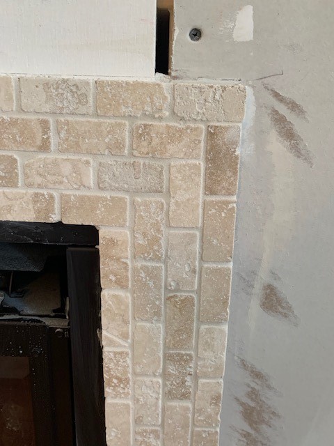 Let’s jump back to the fireplace for a minute. We are getting ready to start tiling and then build the mantle. This will be our first time to tile, so we picked an easy tile (1″x2″ tumbled travertine on mesh). We have it laid out but will wait until we have more energy tomorrow or Tuesday to actually put it up. We’re excited but a little nervous too!