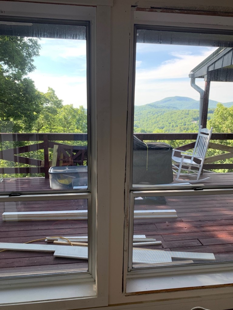Okay, well, maybe that view isn’t so “killer” since it’s got all of our construction equipment which you get to look at, but you get my drift! 😉 Here’s another picture of it after Keith put on the trim around it.